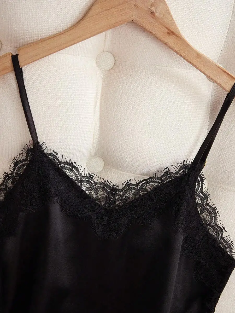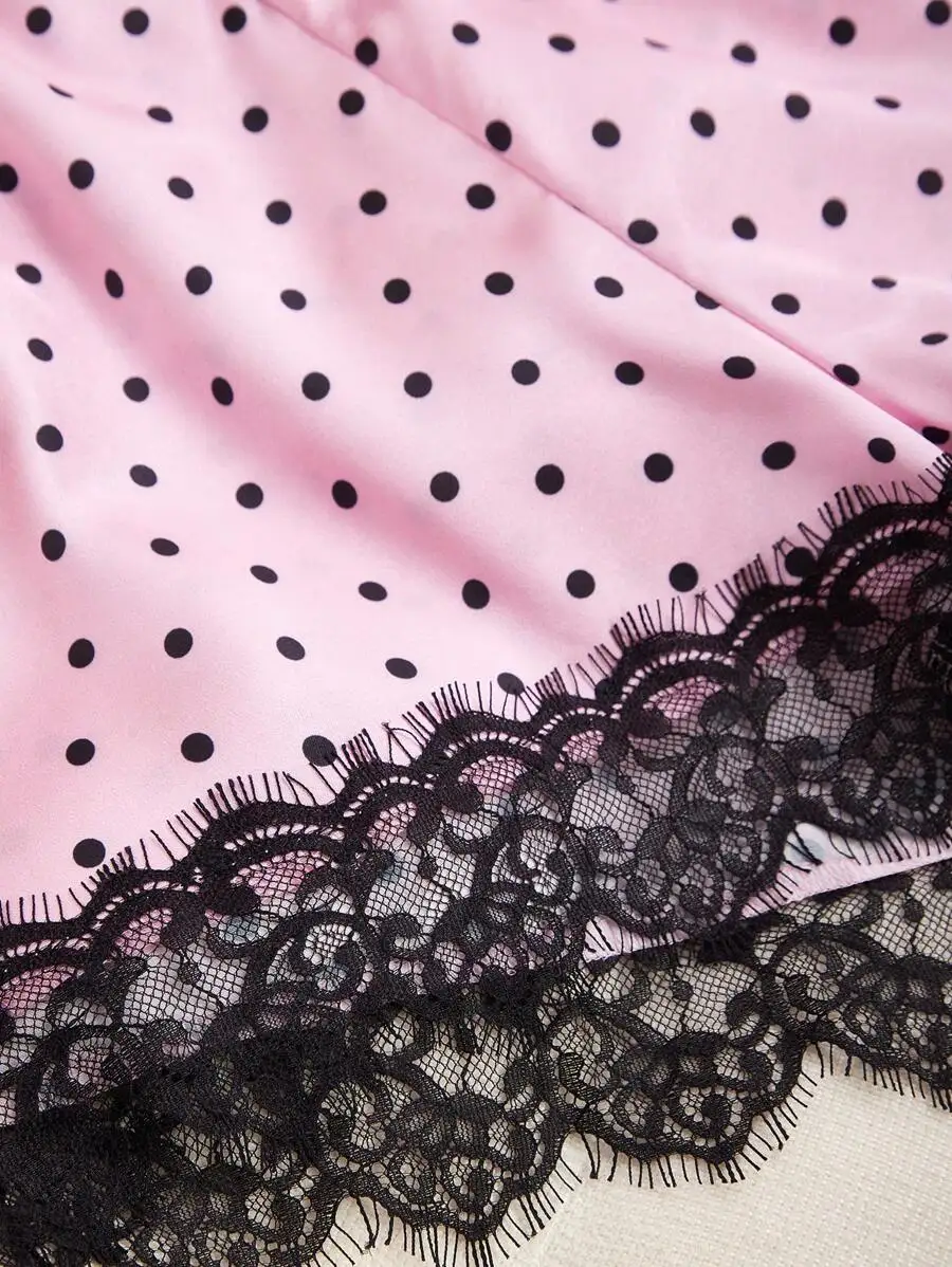 2PCS Pajama Suit Women Fashion V-Neck Stretch Satin Lace Sexy Lingerie Bowknot Pyjamas Shorts Set Pink and round dot Sleepwear
