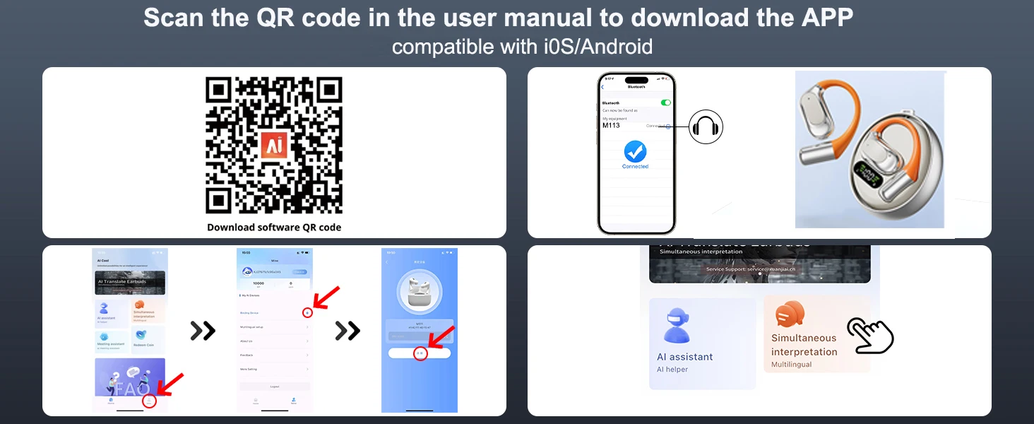 AI Translator On-ear Headphones 144 Languages Real Time Two-Way Translation Earphones Stereo Sound Wireless Bluetooth Headsets