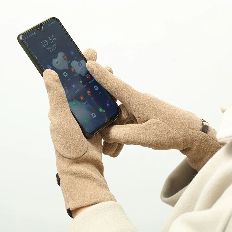 Derong Gloves Women's Winter Velvet Warm Metal Chain Embellishment Suitable for Driving and Cycling a Pair of Touch Screen Gloves