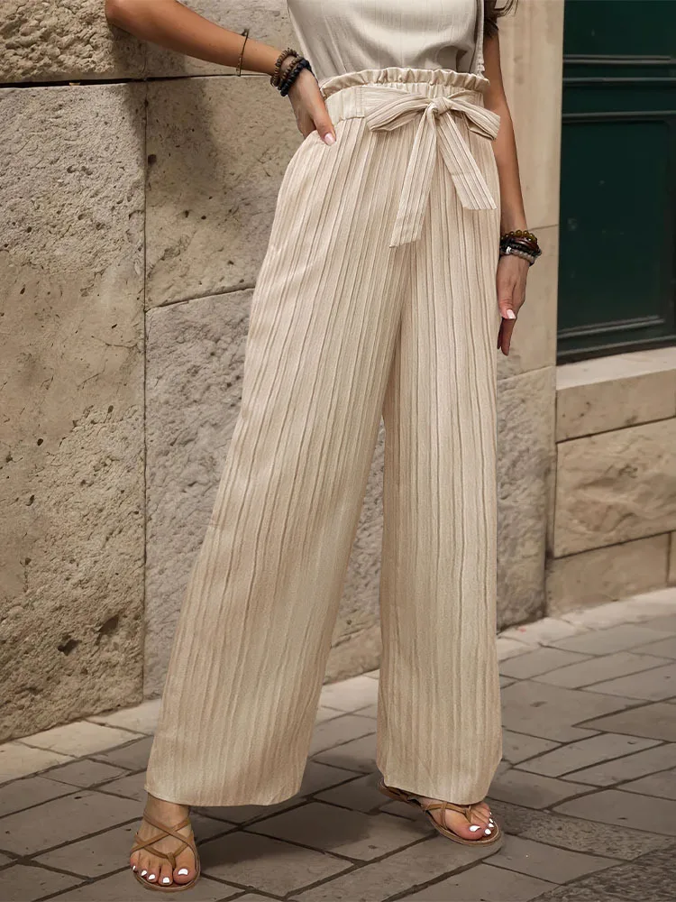Fashionable and versatile casual straight trousers for women with lace-up ruffled elastic trousers