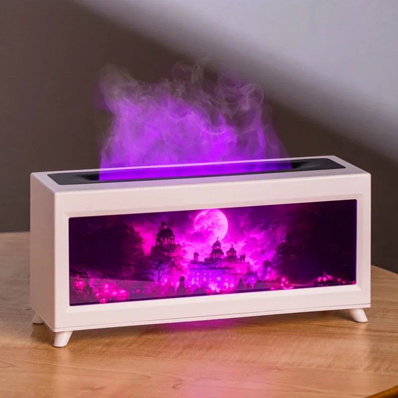 Home Fragrance Diffuser Simulated Fireplace Realistic Flames Aroma Humidifier Quiet Essential Oil Diffuser With Atmosphere Lamp