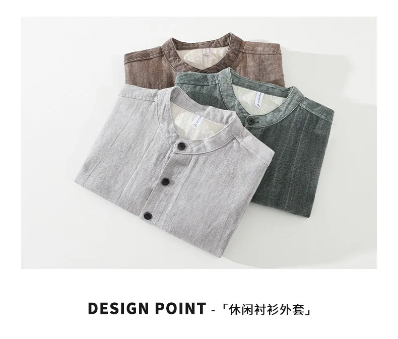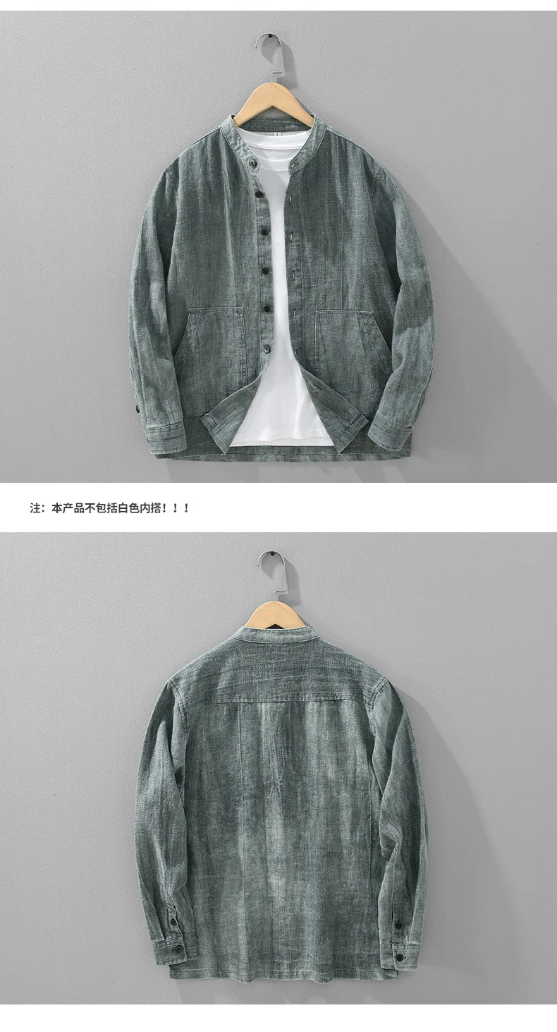 Japanese Vintage Jackets for Men Autumn New Man Jackets Solid Loose Stand Collar Button Cotton Linen Jacket Casual Mens Clothing