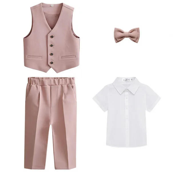 Kid Boys Formal Pink Suit Boy Child Wedding Suit Elegant 2-14Y Boys Suits Outfits Set Gentlemen Kid Jacket Vest Pant Bowtie Suit
