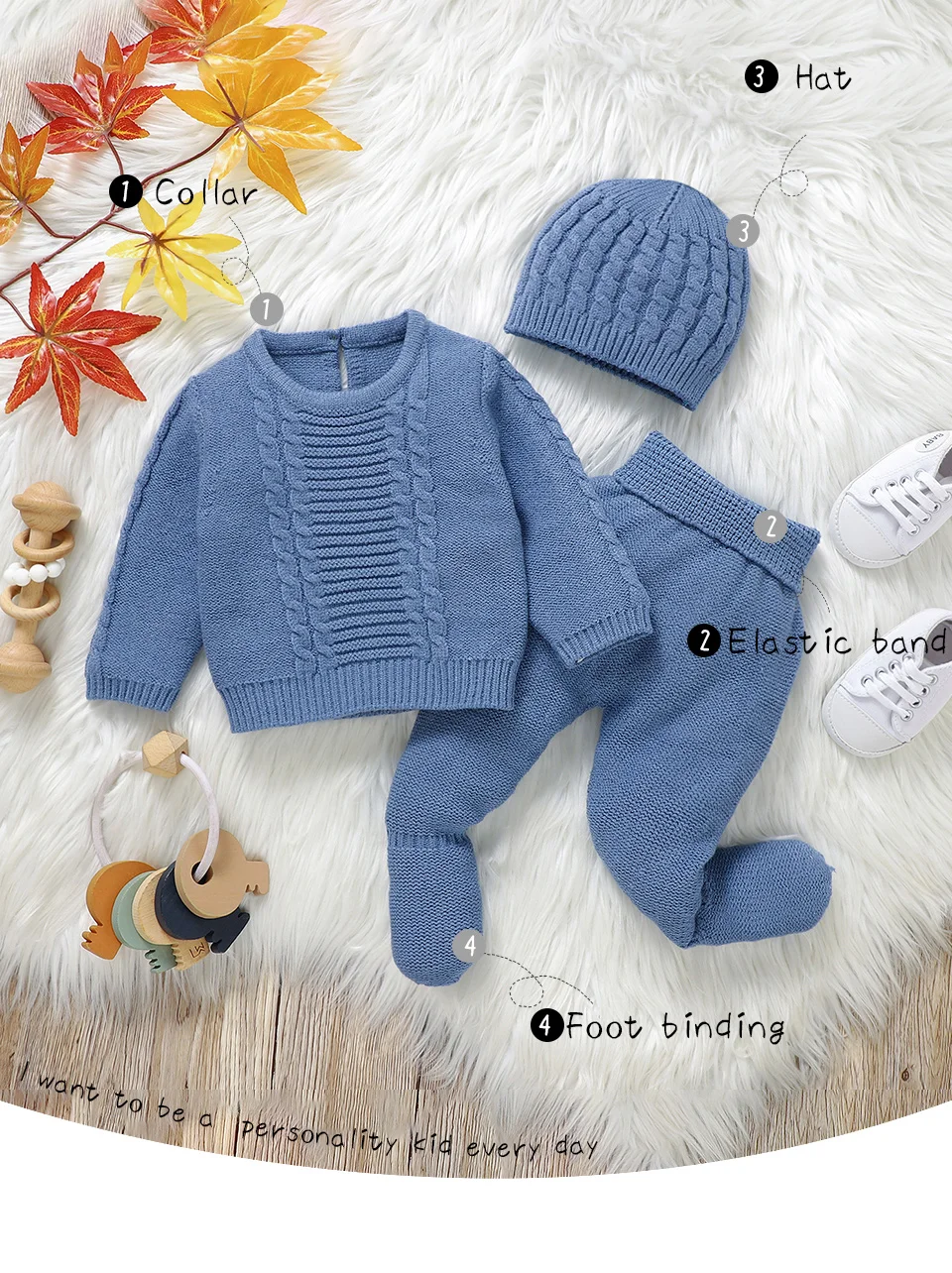Kids Clothes Set 0-9M Autumn Winter Blue Casual Outerwear Newborn Infant Boys Long Sleeve Sweaters Pullovers+Pants Toddler Suits