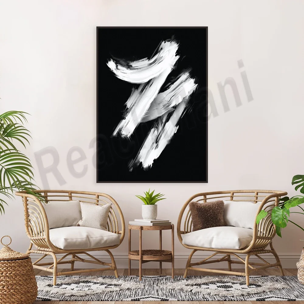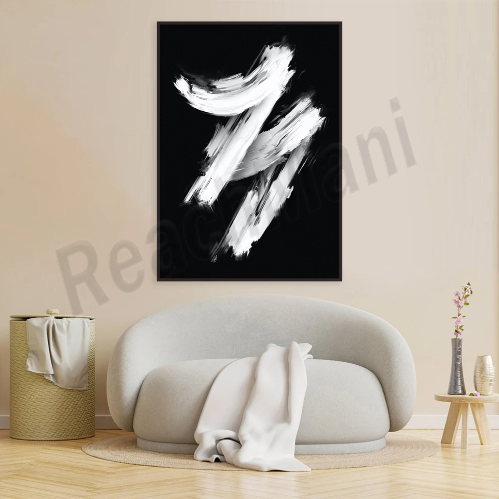 Modern abstract medieval brushstroke poster black and white canvas painting wall art print living room home decor