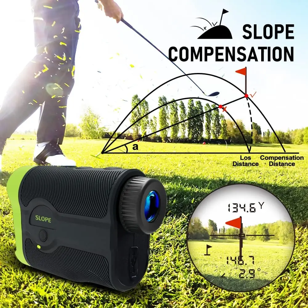 Mode2:Golf Distance Compensation Mode(Turn on the slope switch,in this mode angle, sight of line distance and golf compensation distance are displayed.)