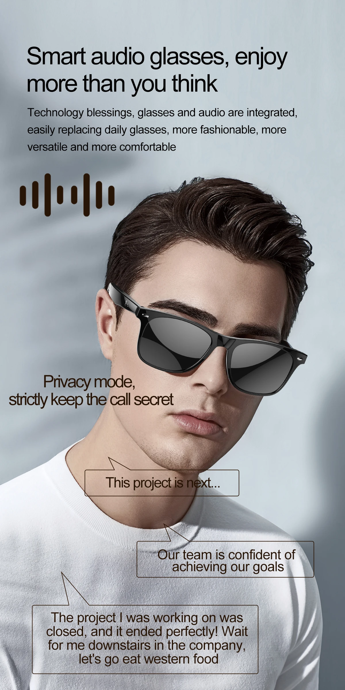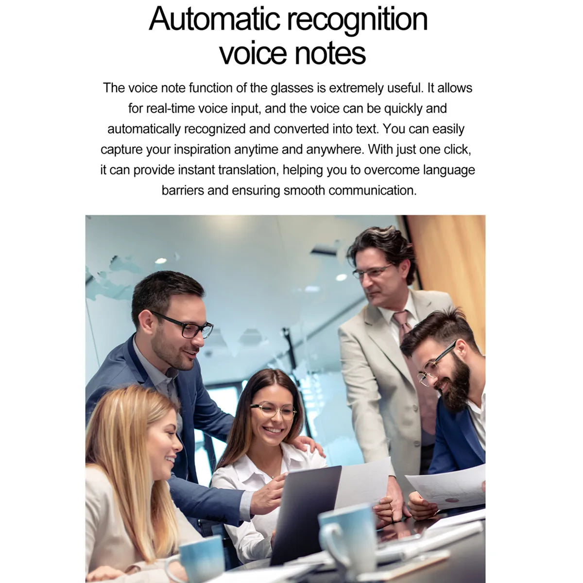 AI Bluetooth Audio - call Fashion Smart Glasses: AI conversation, AI intelligent translation (Translator mode, Glasses + Mobile phone translation mode. Capable of customizing translations for over 134 languages), voice notes, sleep - aid mode, photo translation, remote - controlled photo taking, Bluetooth call, intelligent Hall - effect sensor for automatic power - on/off, intelligent voice assistant, music playback (switching and pausing for music enjoyment), remote - controlled photo taking. It uses the low - power - consumption AB5712F chip, ensuring long - lasting battery life. Weighing only 25g, it provides a comfortable and unnoticeable wearing experience. It can be equipped with various lenses such as sunglasses, blue - light - blocking lenses, and myopic lenses.