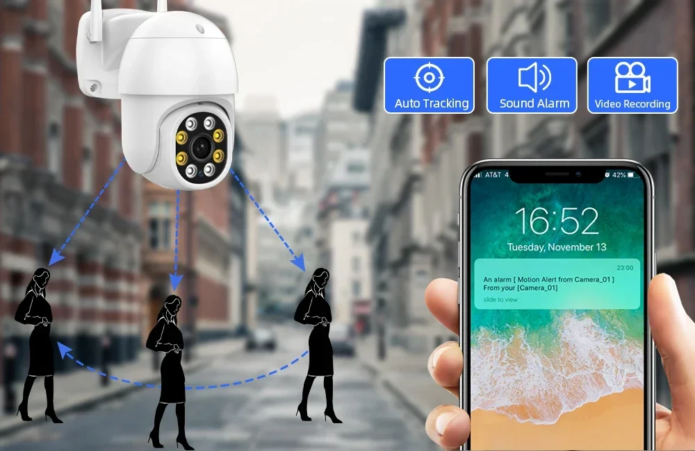 When someone passes through the alarm area, the camera will detect the person's movement. And track people.
