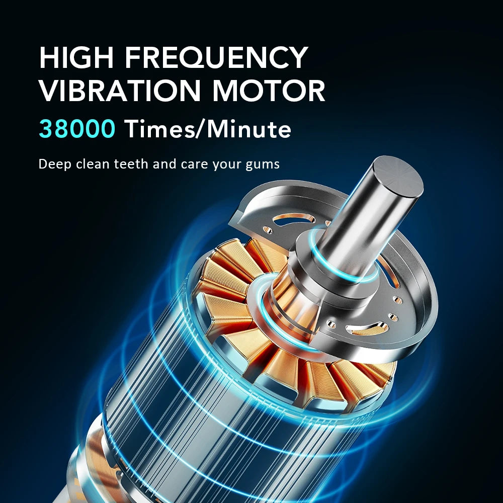4. With 38,000 vibrations per minute, the powerful sonic motor delivers deep cleaning that removes plaque and food particles, enhancing oral hygiene and promoting fresh breath.