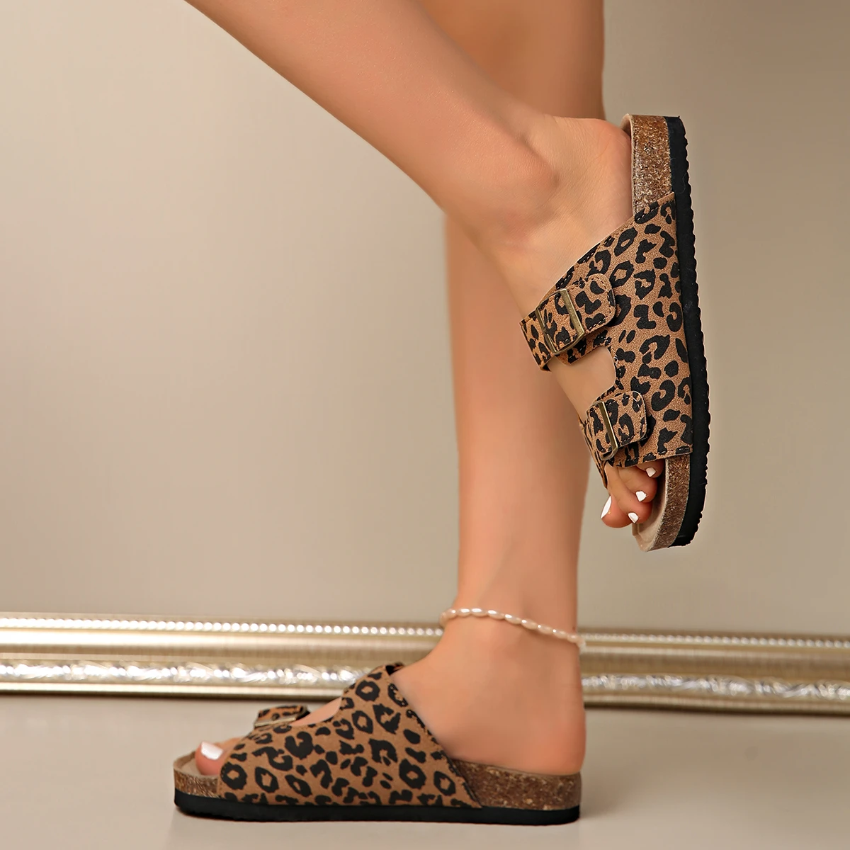 Summer Leopard Print Lightweight/comfortable Women's Flat Slippers Fashion New Round Toe Non-slip Sexy Open-toe Beach Slippers