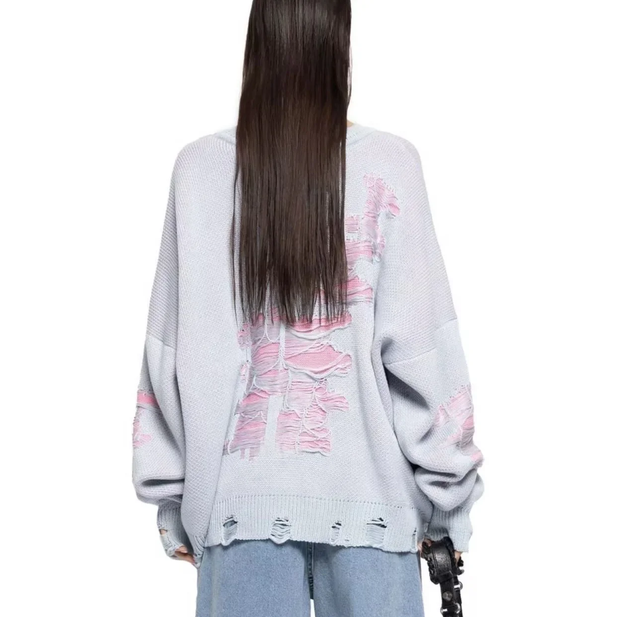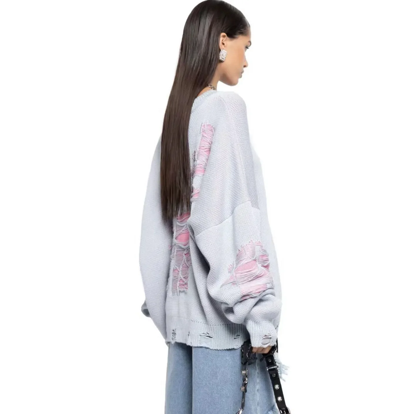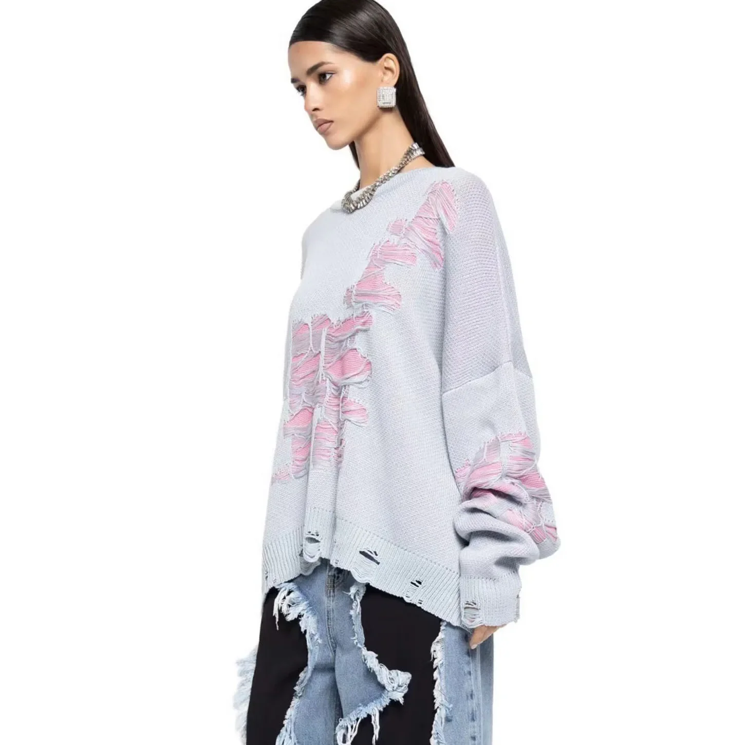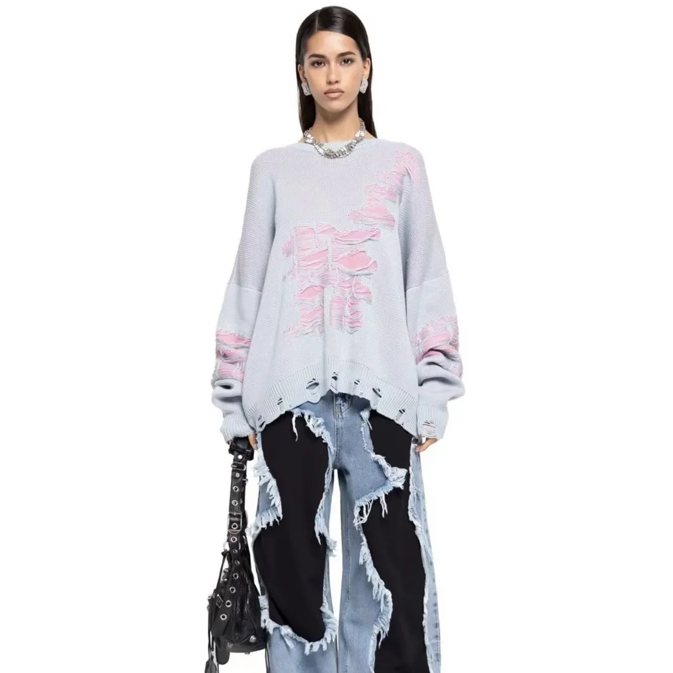 Sweater Women Autumn Personality Street Distressed Sweater Women's Round Neck Drop Shoulder Sleeve Tops Jumper Pullover Sweater