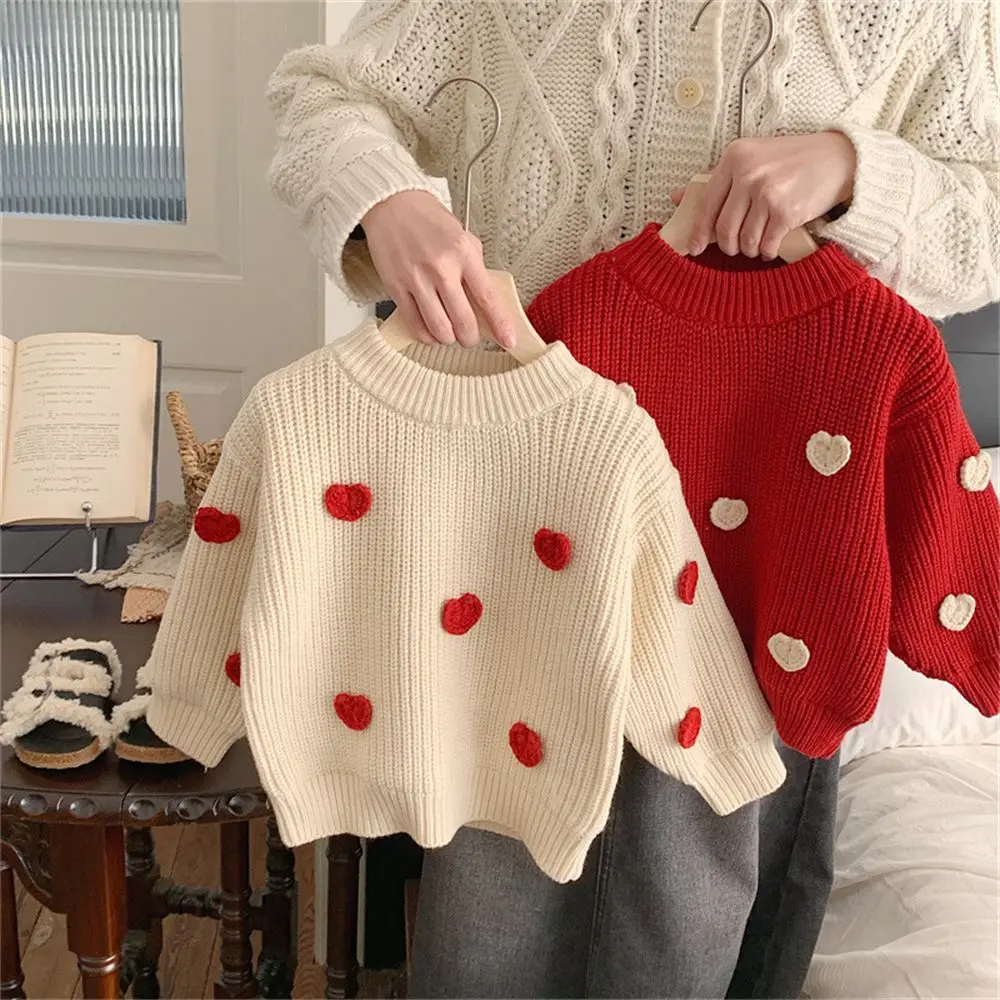 Sweaters for Boys Girls Winter Warm Kids Sweater Red Cartoon Love Knitted Top Christmas Outfit Girls Boys Casual Simple Fashion