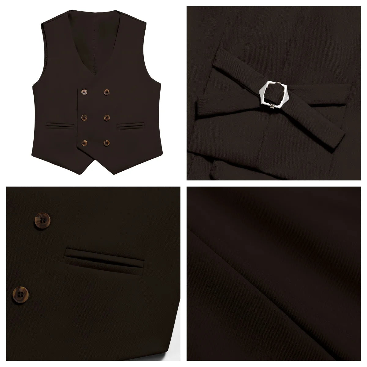Vintage Brown Formal Suit Set for Kids, 3-14 Years Boy's Tuxedo Set, Blazer, Vest, Pants, Bow-tie, Graduation Party Dresswear