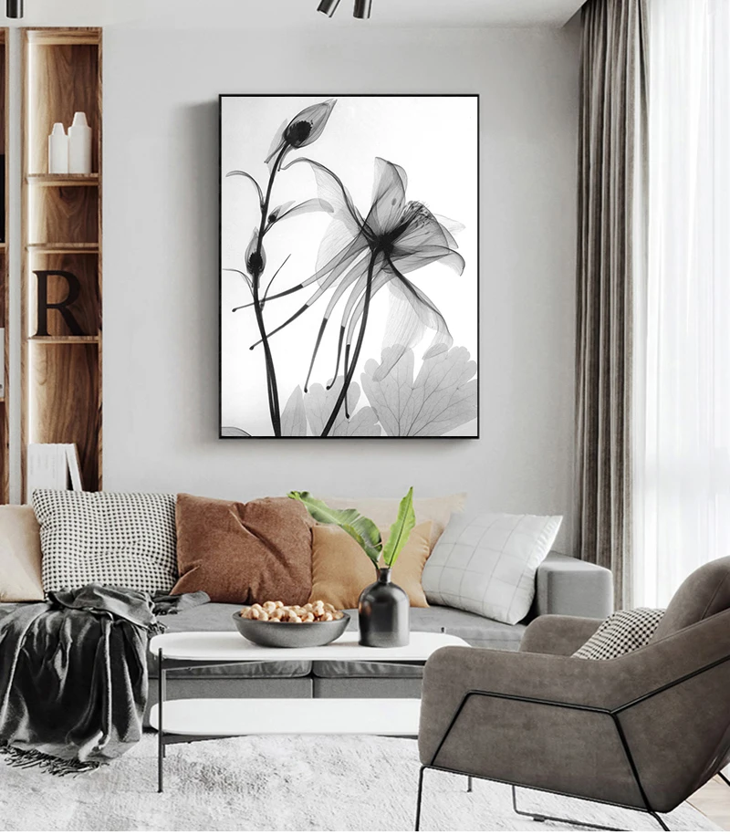 Wall Art Painting Decorative Picture Home Decor Nordic Black White Plant Abstract Flower Canvas Posters Canvas Prints Minimalist